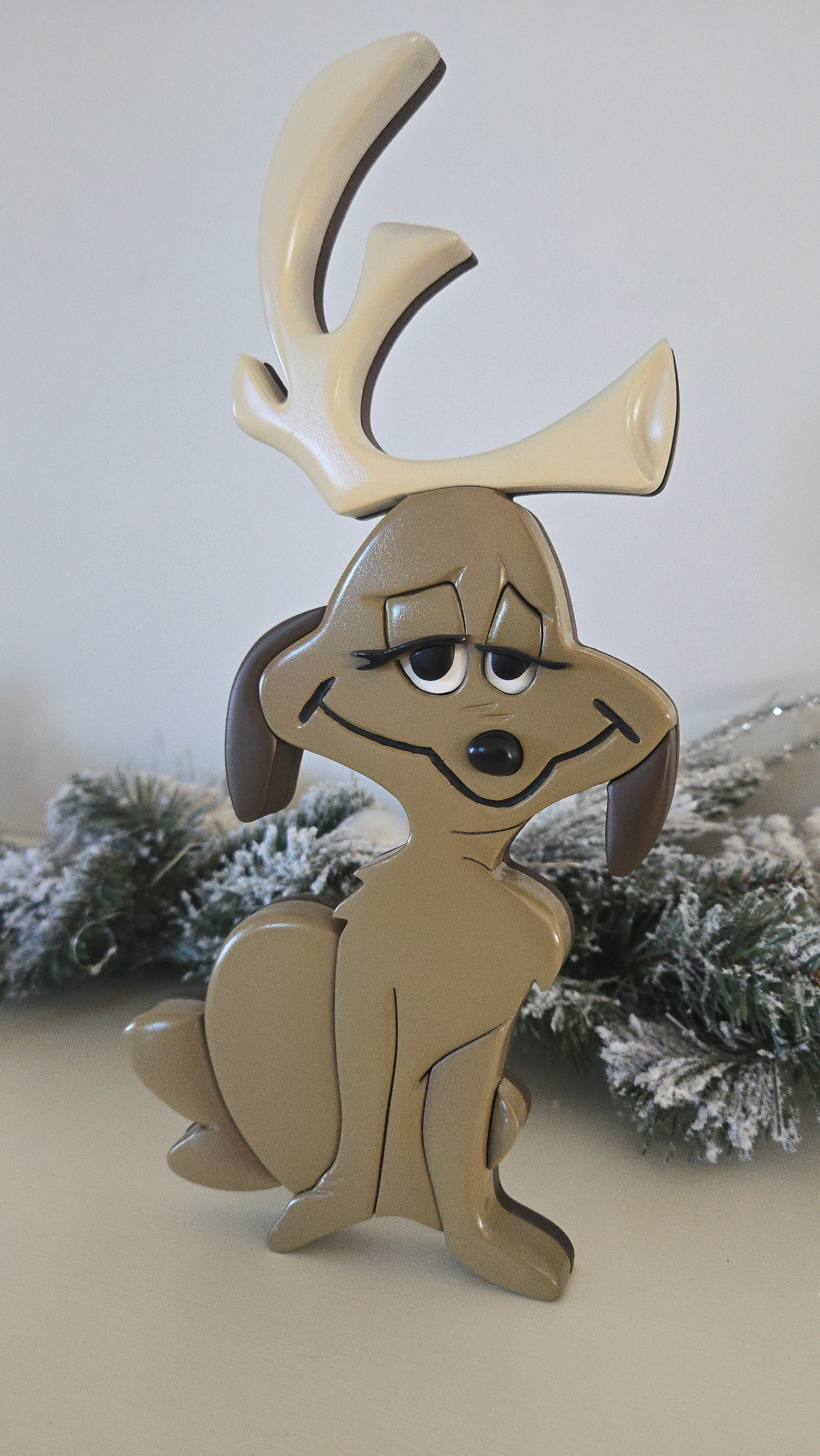 Max was cut by hand using a scroll saw, shaped and sanded,and placed on a solid backer